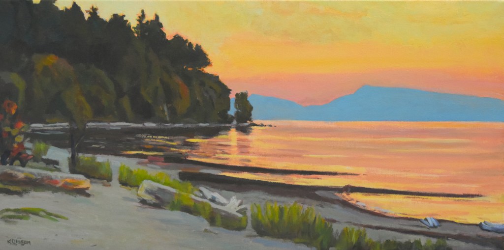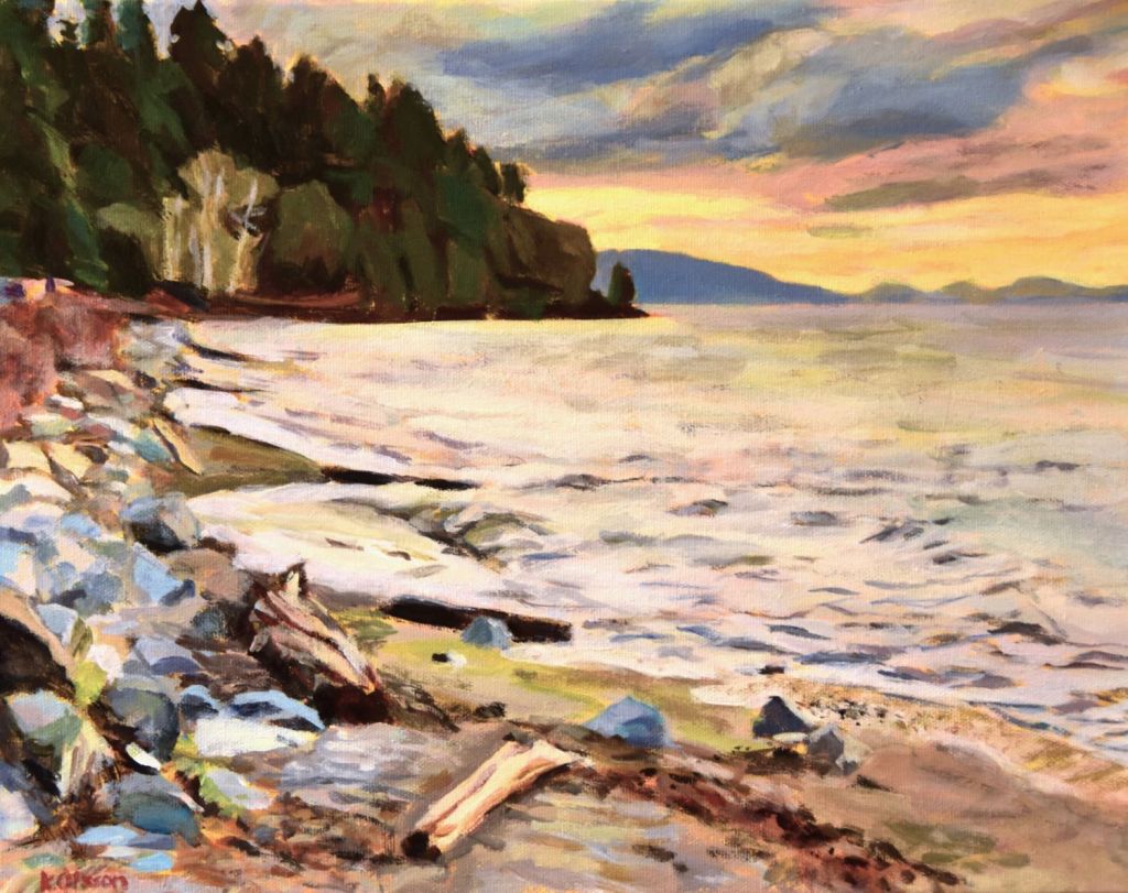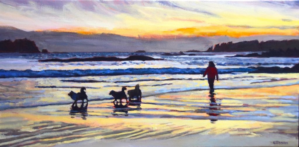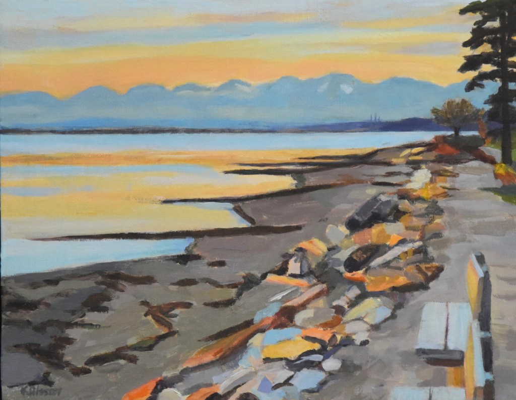 Dog Walking, 12×24, $450Tidal Movements, 16×20, $550Waves Connecting, 12×24, $450Halfmoon Bay, 36×24 inches, $1,000Looking South 18×24, $750Bike Friendly, 22×28 inches, $900Resting, 12×12, $350Apple Symphony, 9×12, $250Oh Deer, 10 x 10 SOLDIntertwined 16 x 24 $600Nightfall 12 x 24 $450Seat With a View 11 x 14 $350Winter Beach 11 x 14 $350Low Tide Access SOLDColour Play 10 x 10 $230Longing for Galiano 16 x 24 $600Deer Evening, SOLDLonging for Summer 20 x 16 $500I See You 10 x 10 SOLDWild Pacific 20 x 20 $700Wild Evening 18 x 24 $750Crescent Beach Sunset 2